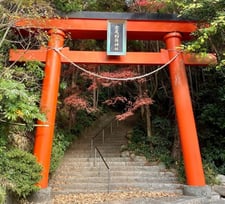 山頂近くには焼火(たくひ)神社があり、鳥居越しに海を望む美しい景色が広がる絶景スポットです。